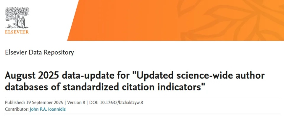 当地时间9月19日,斯坦福大学(Stanford University)和国际权威学术出版社Elsevier共同发布了2025年“全球前2%顶尖科学家”(World's Top 2% Scientists)排行榜。