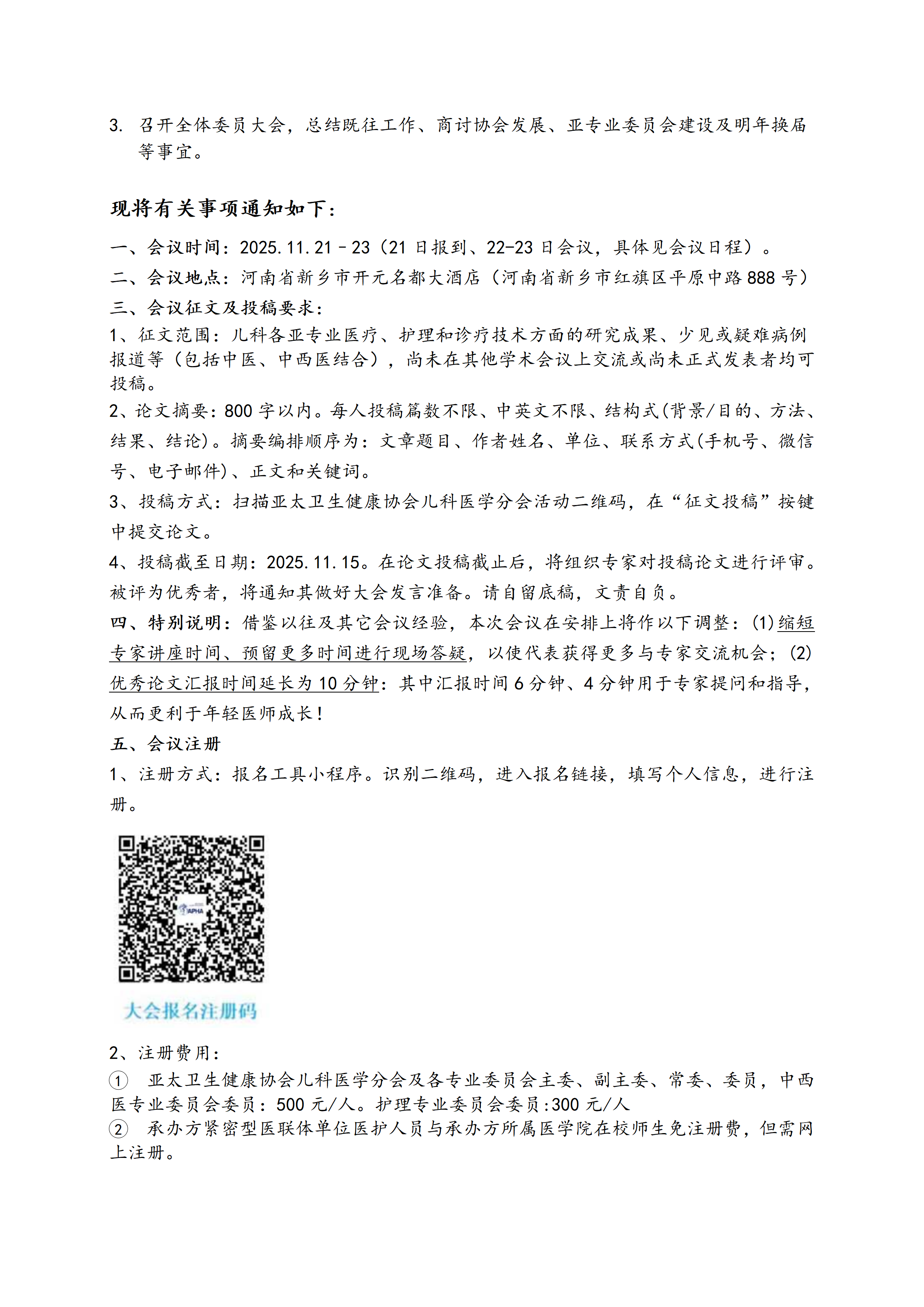 亚太儿科医学大会(2025.新乡) 暨亚太卫生健康协会第五届儿科医学分会学术年会 Asia Pacific Congress of Pediatric Medicine(XinXiang 2025)5th Congress of Pediatric Branch of Asia-Pacific Health Association